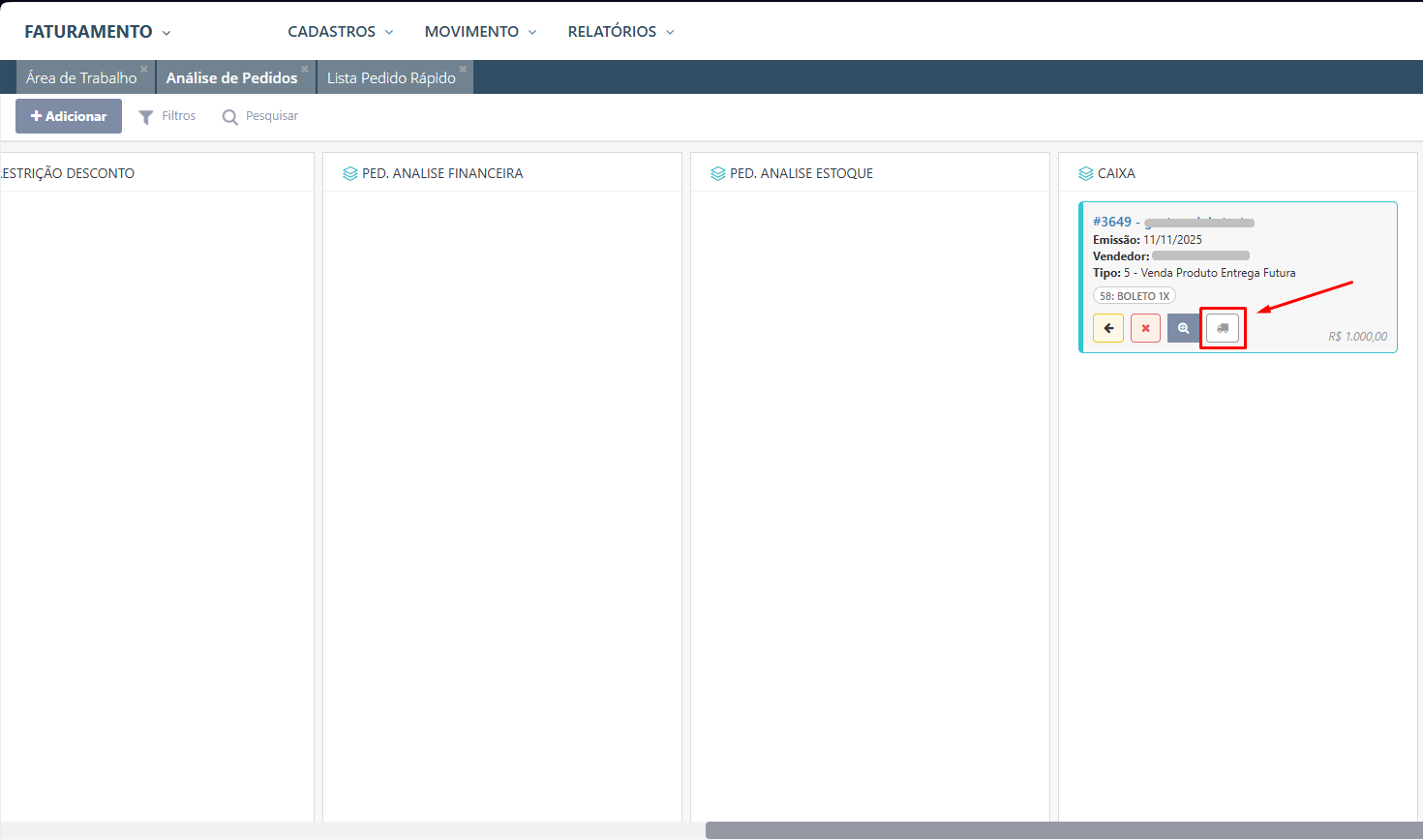 Faturamento > MOVIMENTO > ANÁLISES > Análise de Pedidos