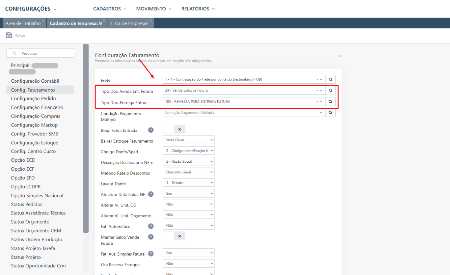 Configuração Empresa