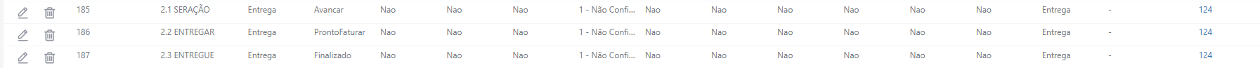 Status, tera 1 para (Avançar), 1 (ProntoFaturar), 1(Finalizado)
