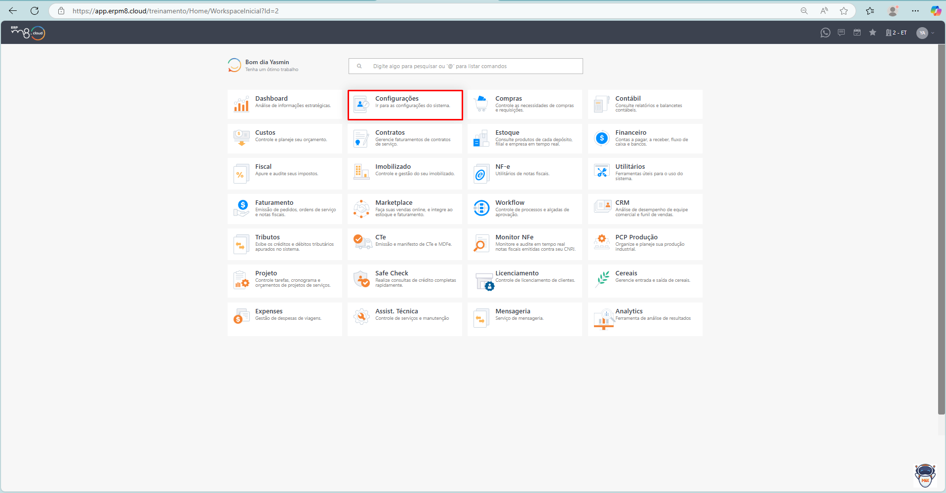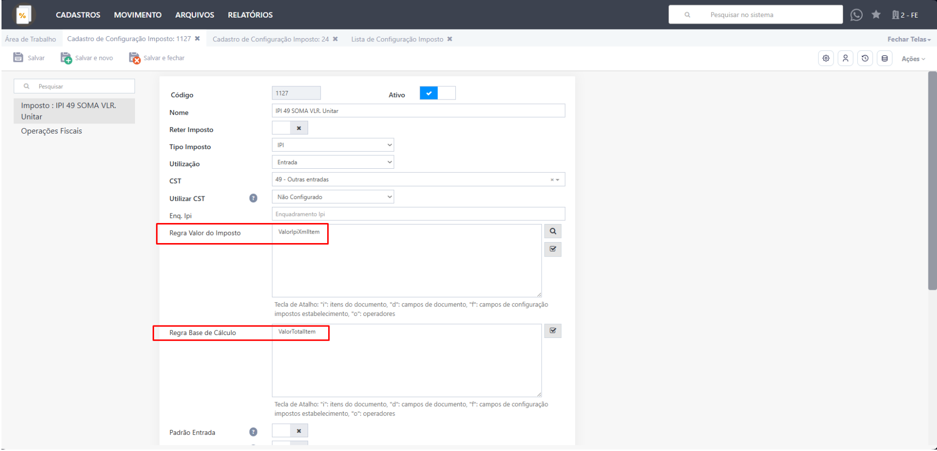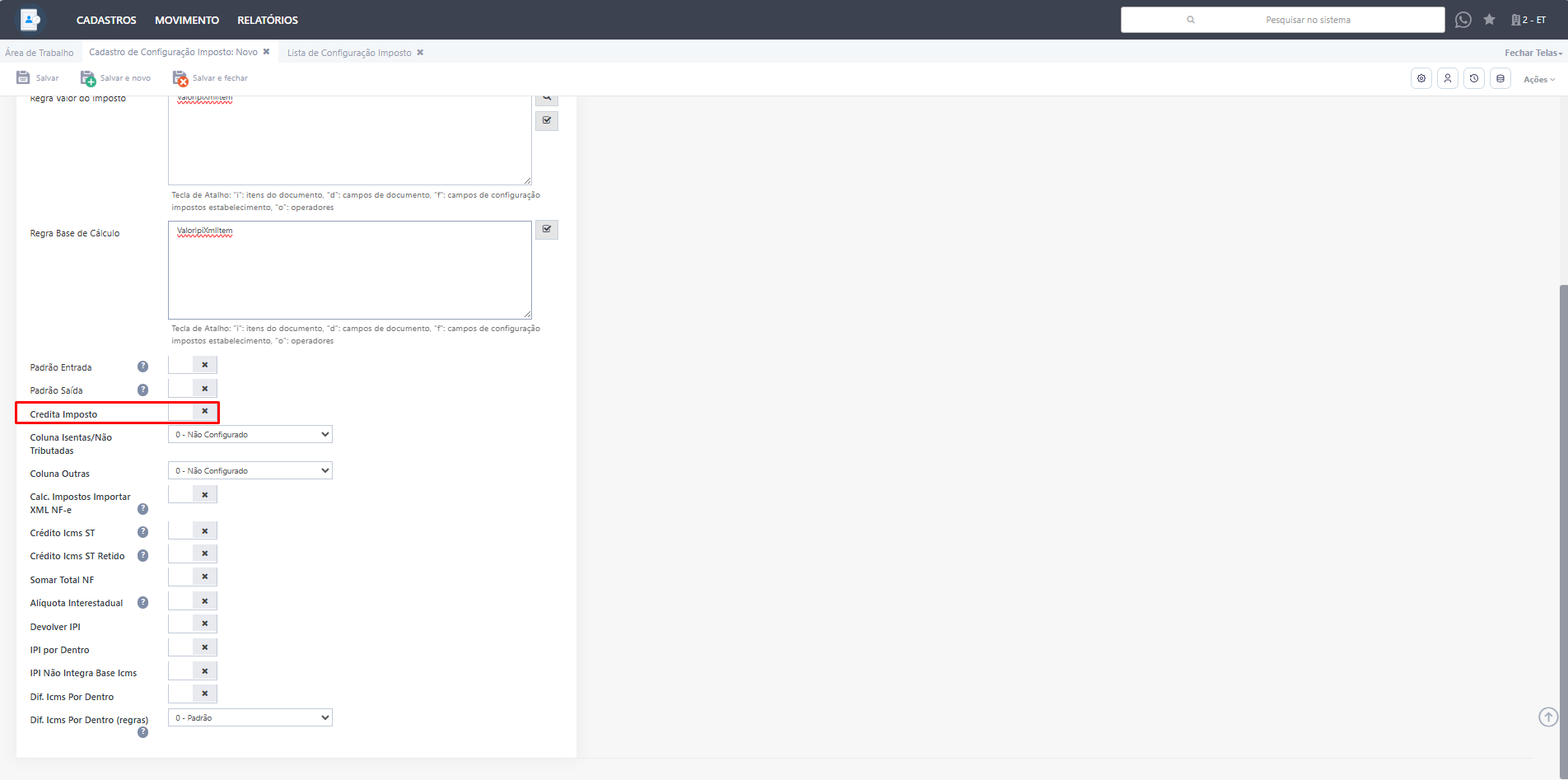 Pesquise pela configuração que deseja utilizar para parametrizar o Valor do Imposto e da Base de Cálculo, ou clique em